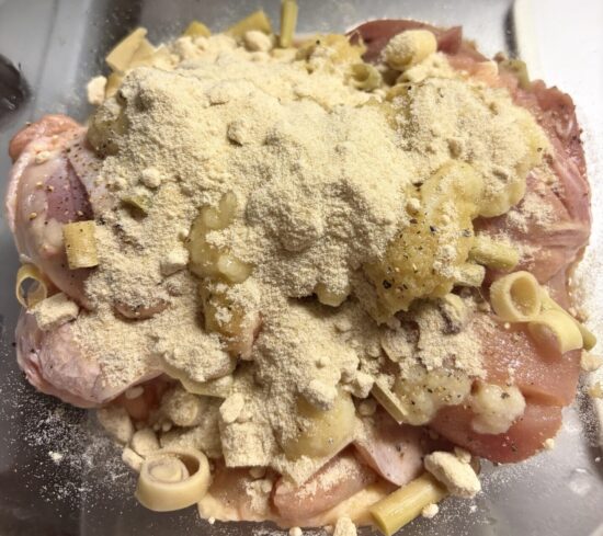 ⑨5分おきにマリネ液とチキンオイルを鶏もも肉にかける