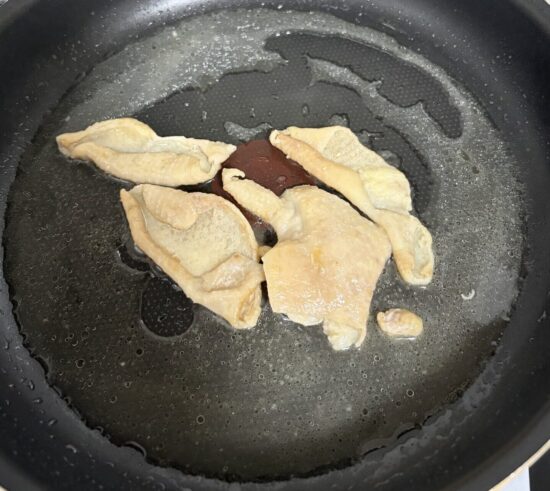 今回はレシピに記載の鳥皮250gよりかなり少ない分量で調理しています。