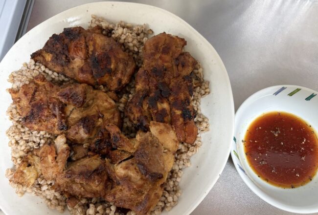 炭火の香ばしい香りと、酸味の効いた独特のタレが染み込んだチキンは、一口食べれば「ご飯が止まらない!」という状態になること間違いなし。